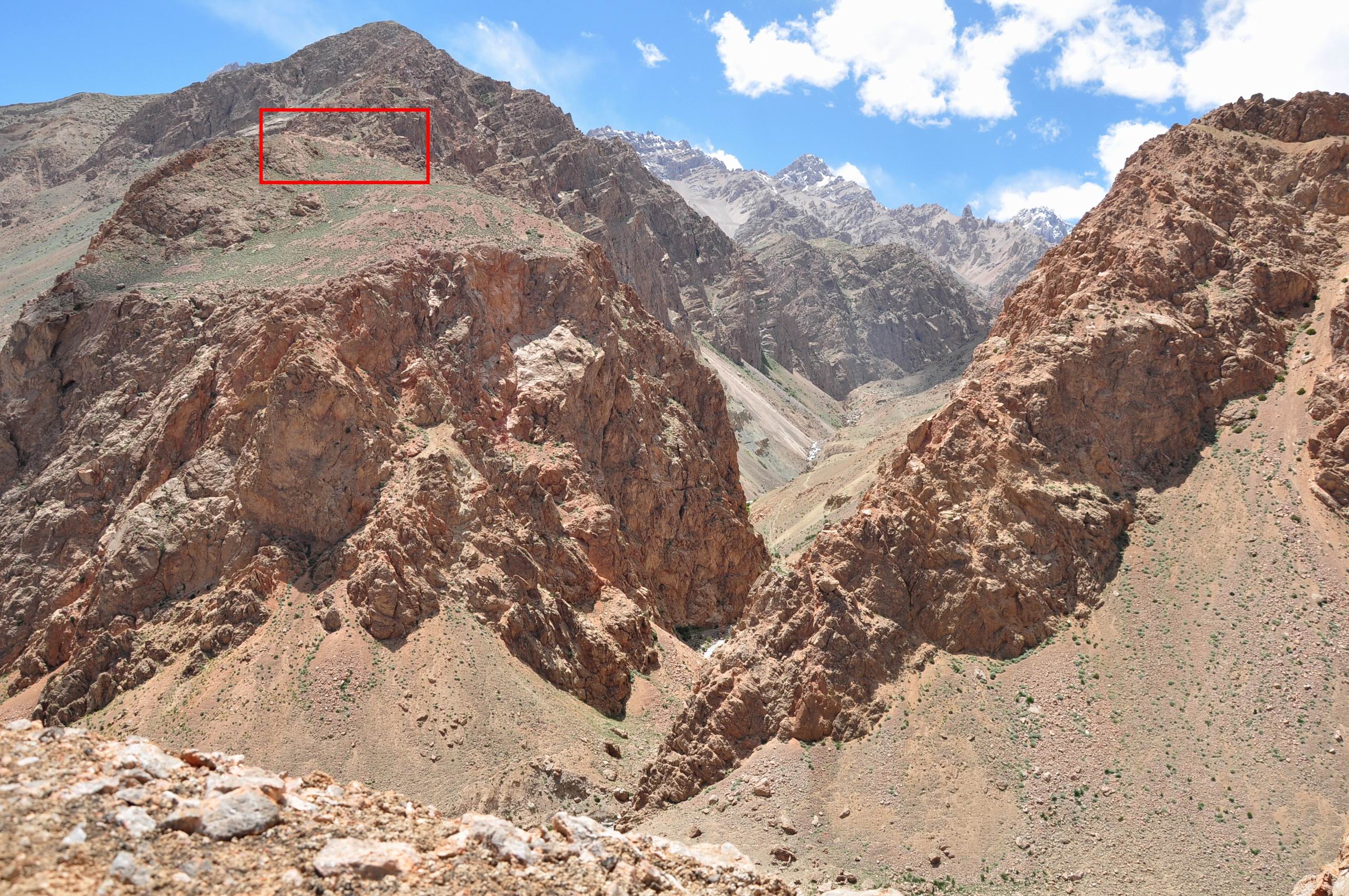 没有去到国门, 非常失望, 但是也只能返程. 在返程的路上, 又看到了去往”公主堡”的指示牌. 公主堡这个名字很好听, 其故事源于玄奘在《大唐西域记》里记载的一个传说: 很久以前, 有一位汉族的公主远嫁波斯. 但送亲的队伍途中遇到匪乱, 使者和卫队为了保护公主, 就近找了一个陡峭的山岗, 把公主安顿在上面, 四周严密把守, 每天的饮食专门用一根绳子吊上去. 不久匪乱平息, 使者恭请公主重新启程, 但公主此时居然已怀有身孕! 据公主身边的侍女说, 每天都会有一个骑着金马的王子从太阳中来到山上和公主幽会, 公主肚子里的孩子就是“汉日天种”. 这个解释肯定是假的, 但是善良的使者只有一个选择: 就地安营扎寨, 在山顶上建立了公主堡, 把公主正式安顿下来, 并拥立为王. 卫兵们则在山岗附近的帕米尔高原上就地开荒种粮, 自此以后繁衍生息,成为玄奘途经时”朅盘陀国”的祖先, 也就是塔吉克人的祖先。玄奘从阿富汗东归的时候确实经过了这个公主堡, 又由这里到达了朅盘陀国的都城”石头城”. 100年前, 英国探险家斯坦因根据《大唐西域记》里的描述也找到了公主堡, 也是这个人将敦煌藏经洞无数的宝藏骗到了大英博物馆.