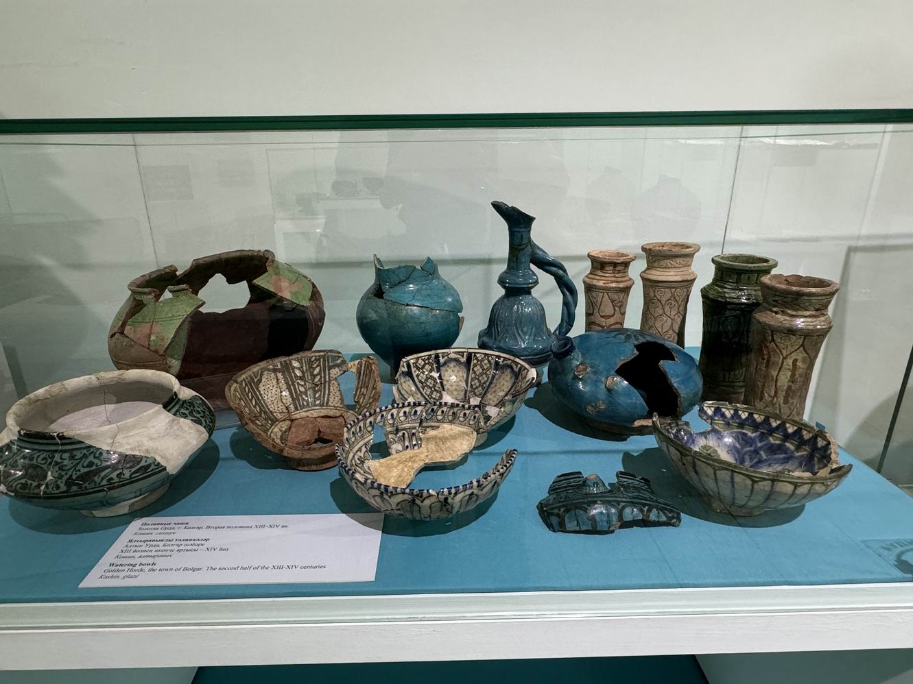 ~17:45来到鞑靼斯坦共和国博物馆(National Museum of Republic of Tatarstan), 门票400卢布, 有两层, 不大不小. 喀山的建城史起于伏尔加河畔的保加尔人(Volga Bulgaria)10-11世纪修建的军事要塞. 13世纪蒙古西征后, 喀山并入金帐汗国(Golden Horde). 15世纪, 金帐汗国解体后, 喀山汗国独立, 但与莫斯科公国频繁冲突. 1552年, 伊凡雷帝攻占喀山, 喀山汗国灭亡, 从此并入俄罗斯, 后来在喀山汗国的堡垒旧址上修建了喀山克里姆林宫. 这个博物馆东西挺多的, 适合2-3小时浏览, 我重点看了金账汗国和喀山汗国的东西, 我印象最深刻的是可以直观看到各个时期的民族服饰. 我看的很慢, 工作人员让我注意时间, 还有2个俄罗斯小女孩看的也仔细, 和我一样拍了很多照片, 19:50卡着关门时间出来. 20:00第3次进克里姆林宫, 俯瞰了农业宫夜景, 以及远处的爱情碗和喀山河, 很宁静的感觉.
