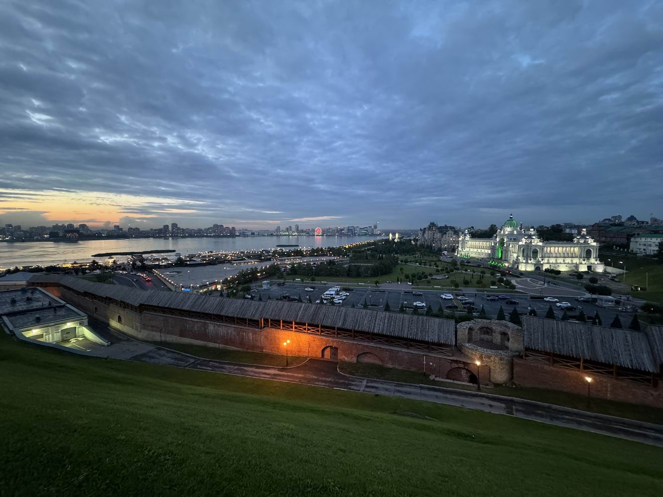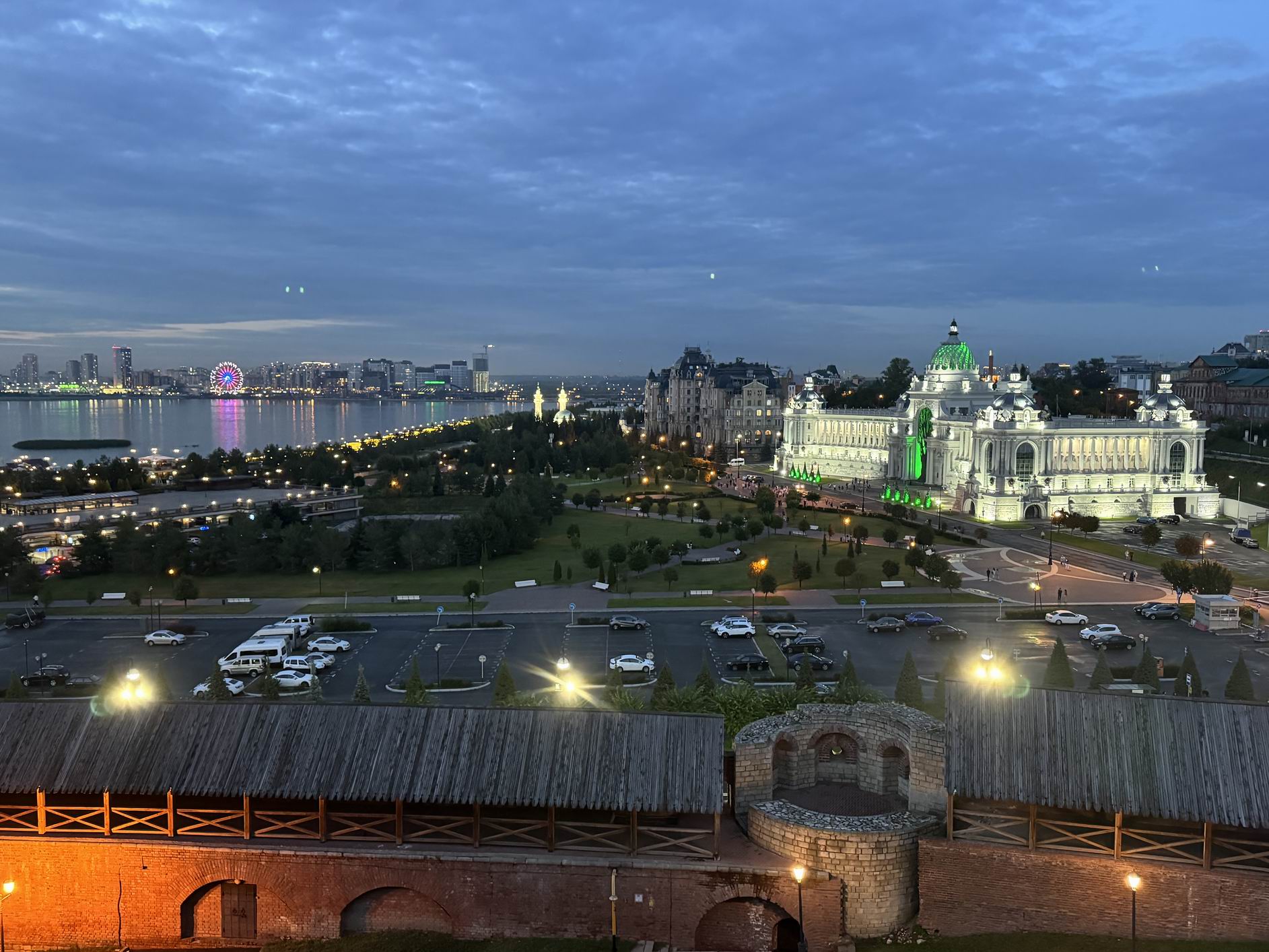 俯瞰农业宫夜景, 以及远处的喀山河:
