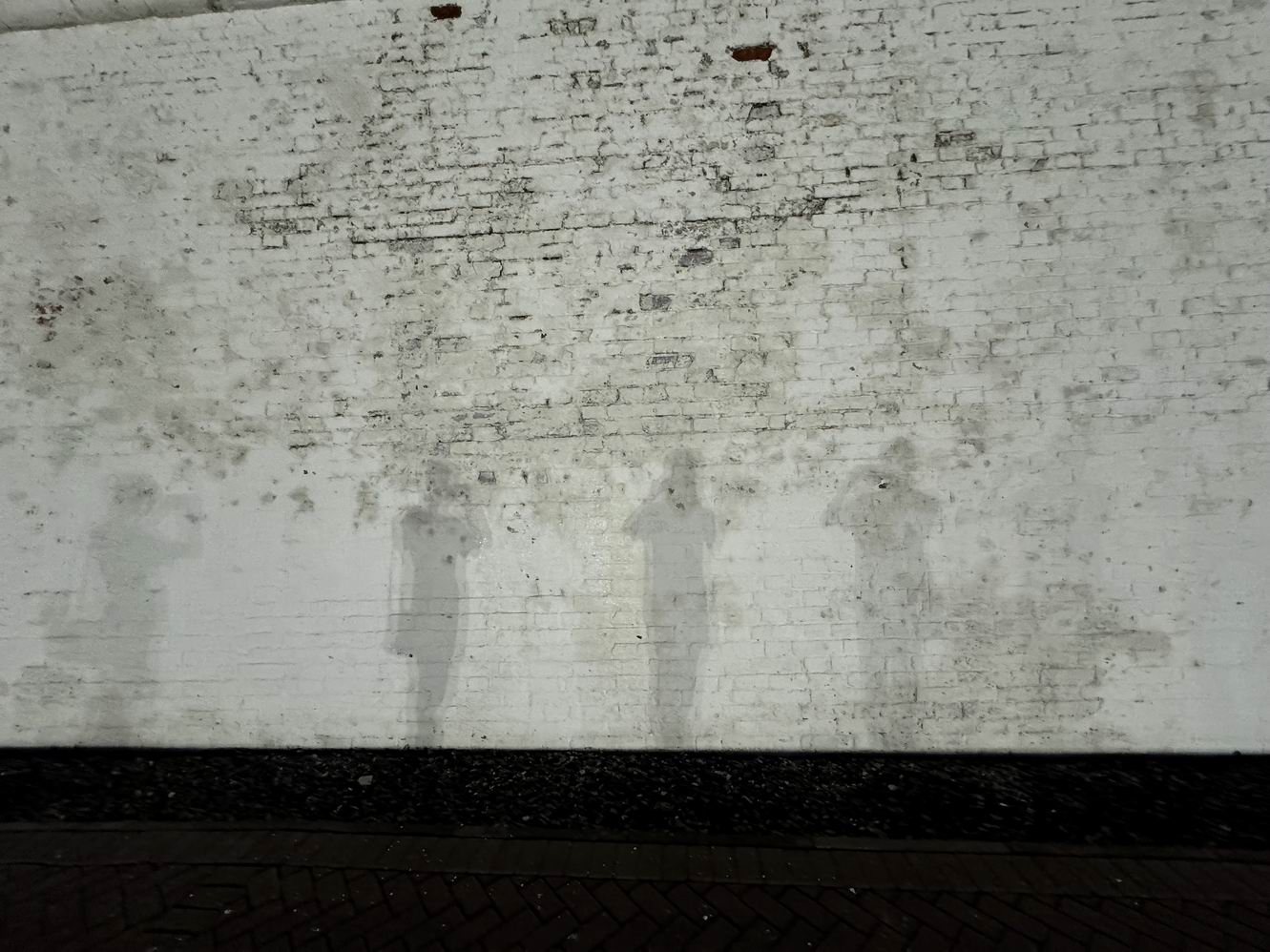 城墙上的多个影子, 因为有多束光, 不孤单: