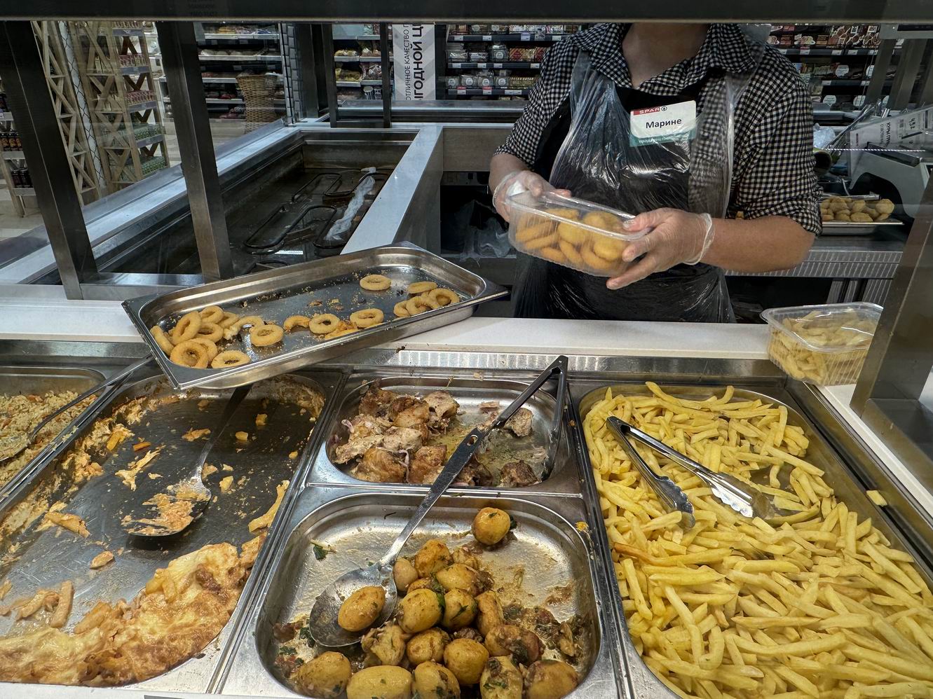 Eurospar买了鸡块洋葱圈桃汁巧克力华夫饼水西红柿咸鱼片, 718卢布: