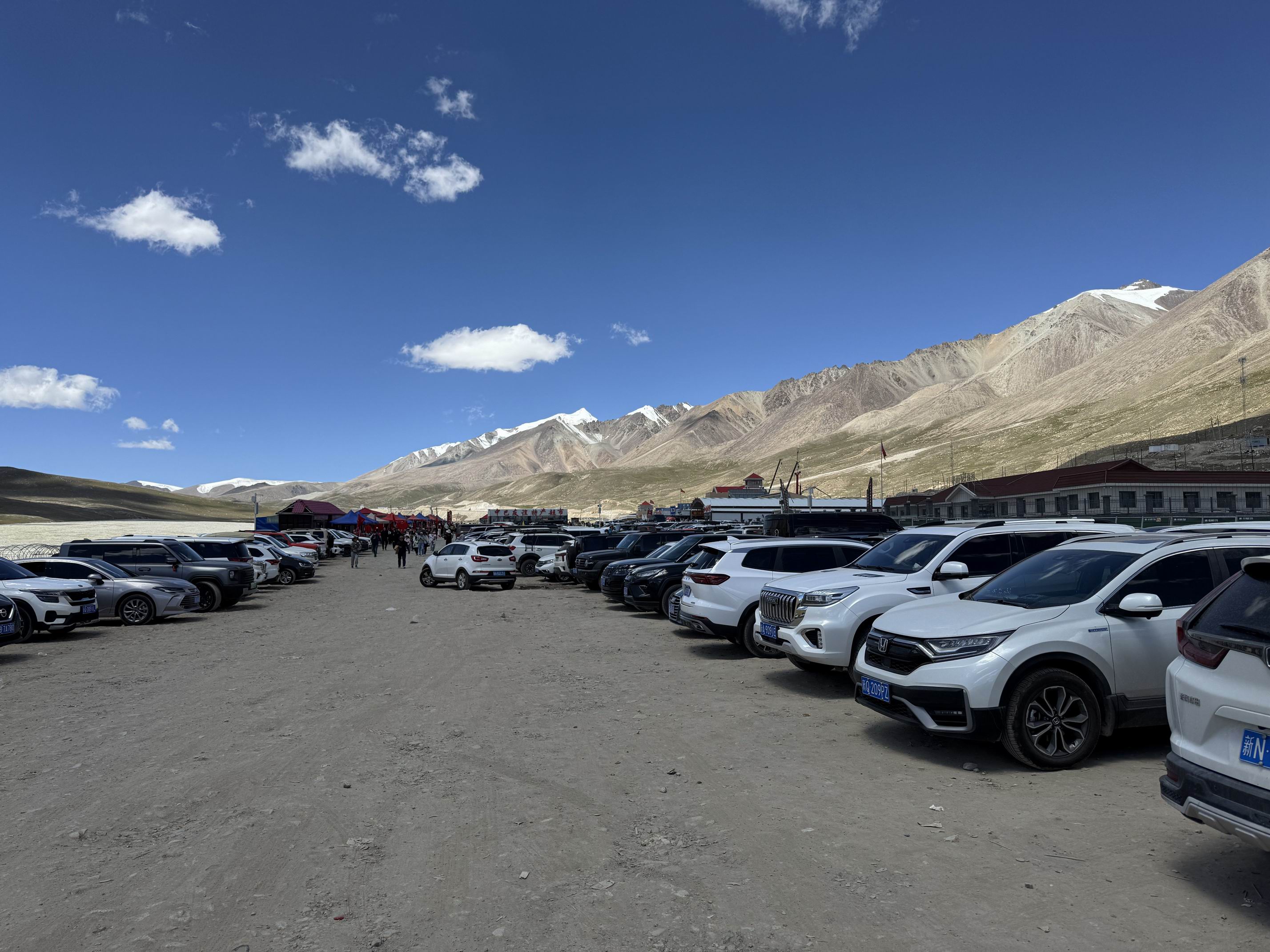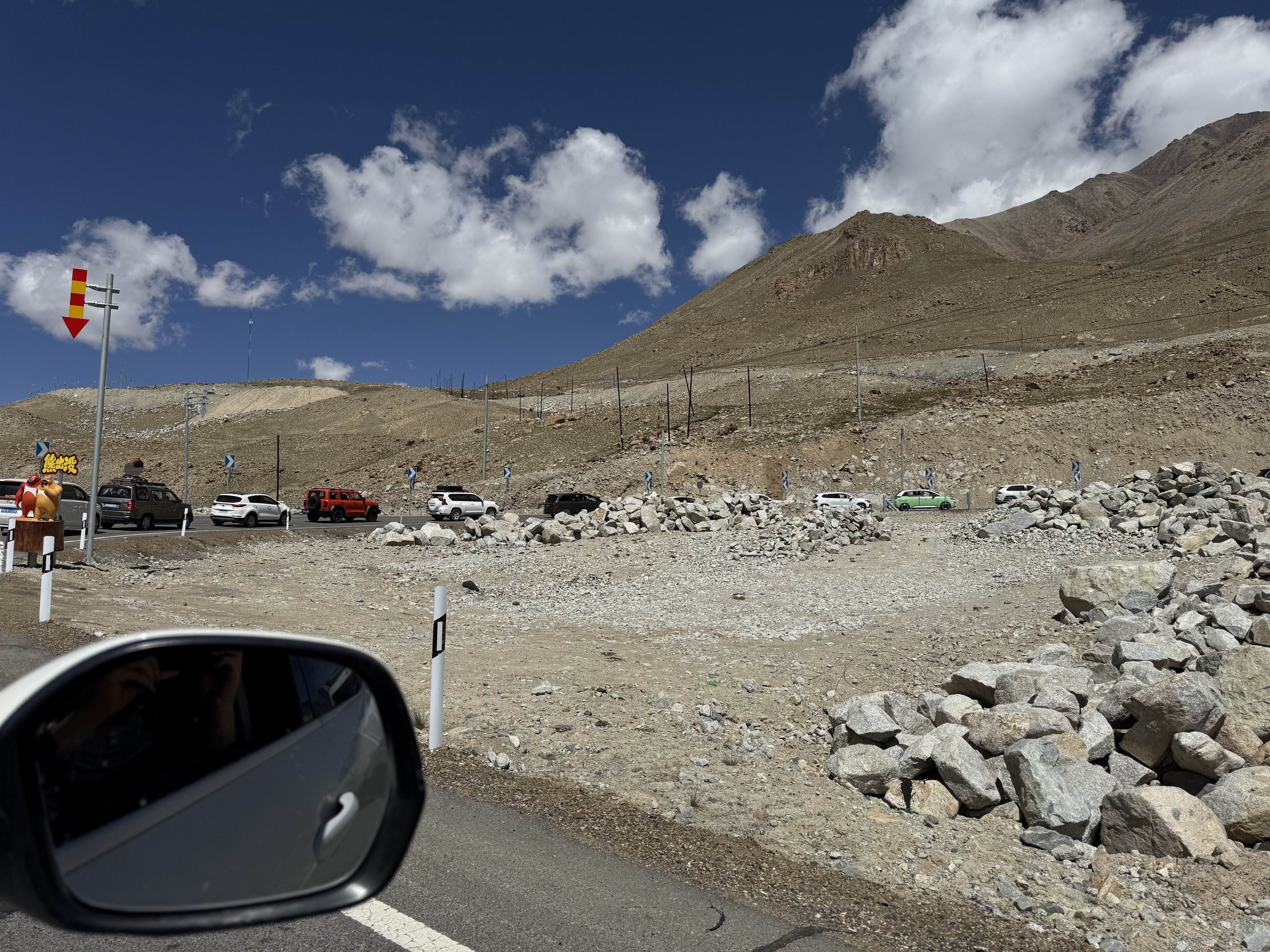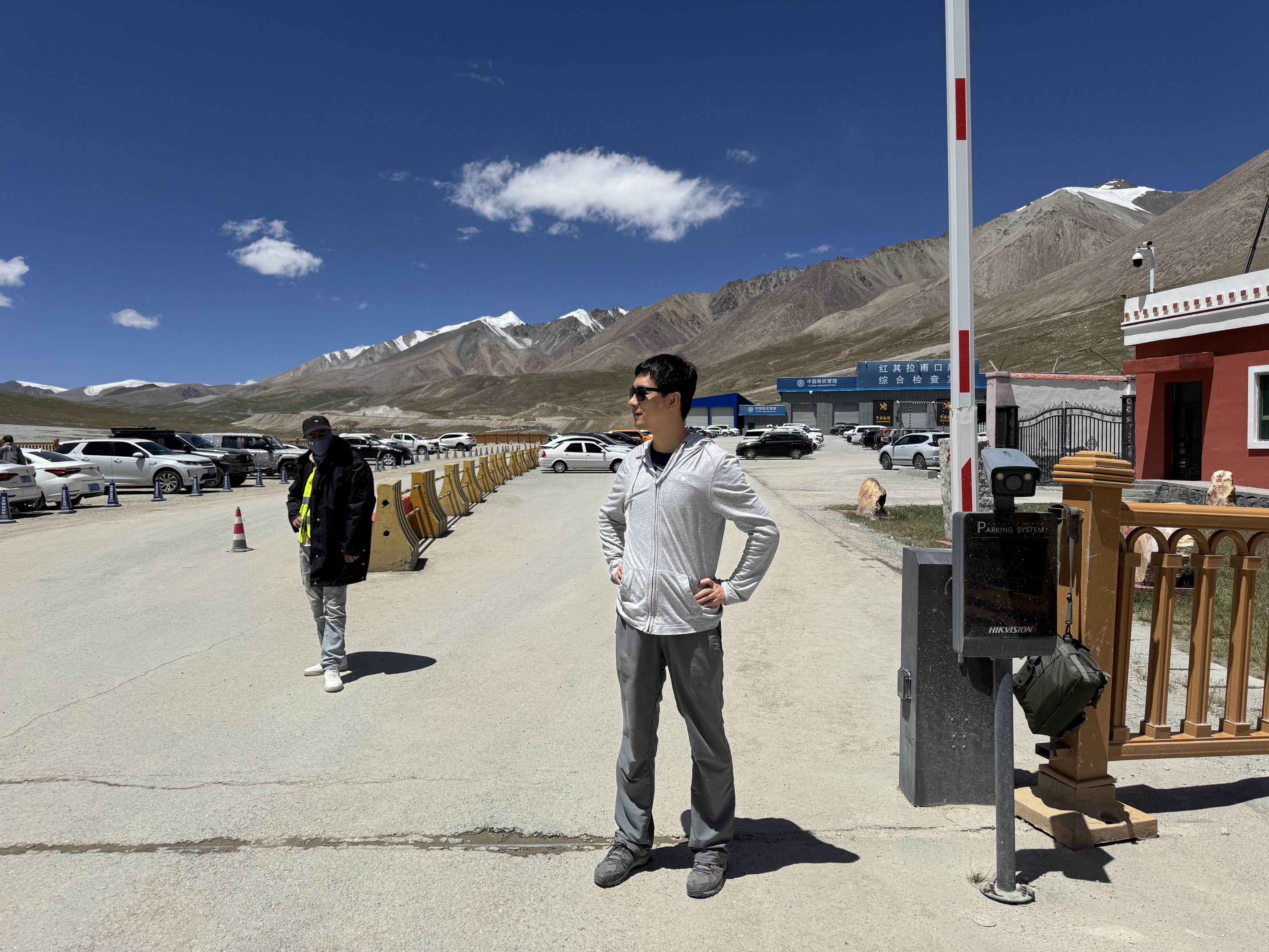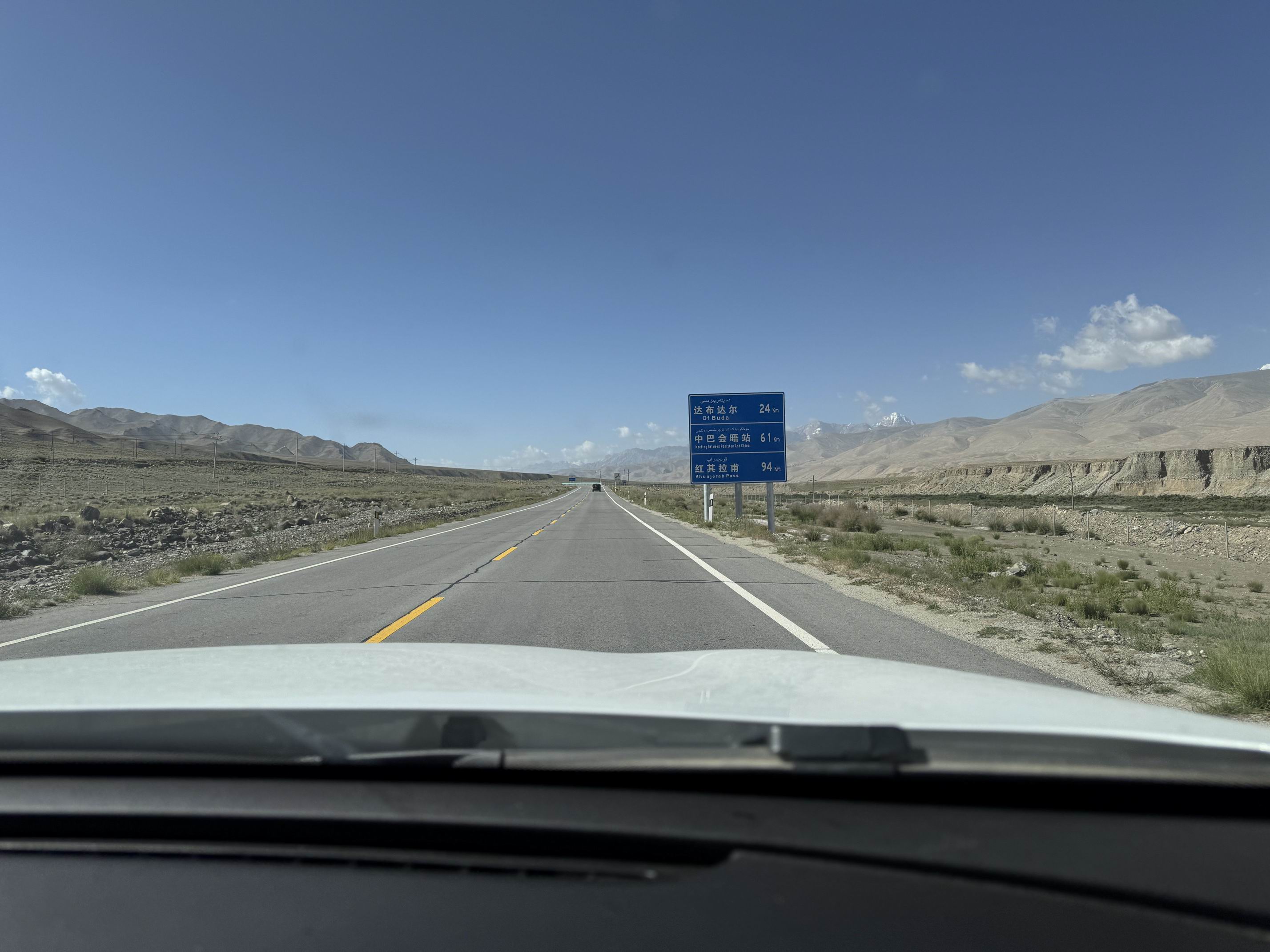9:50起来, 早饭面包鸡蛋和花茶. 10:25出门, 在乔戈里路与盛老板一家碰头, 先去加油(我有1张100元的油卡). 开向红其拉甫口岸, 之前可以远远看到公主堡, 我研究了很多, 所以能一眼认出来山顶上那一点点的浅色土墙. 红其拉甫口岸比以前多了很多游客, 快到的时候开始堵车, 13点多开始排队, ~14:30半才到停车场. 这里的配套也在逐渐完善, 有了商业区, 但去国门只能坐班车. 我在综合检查室前面拍了很多照片, 追忆了12年的拍照姿势. 碰到一个警察, 问他巴基斯坦一侧的情况. 他说Sost那边因为税收问题当地人示威游行, 巴基斯坦人过不来, 中国人也过不去, 还建议我们不要去, 说有骑行的被抢, 说中国人会受欺负, 我知道他是对我们好. 我问他我12年曾在红其拉甫一个牌子前拍照, 我翻照片给他看, 他说那个牌子早没了. 告别警察, ~15:15返程, 午饭吃了个色素鸡腿.