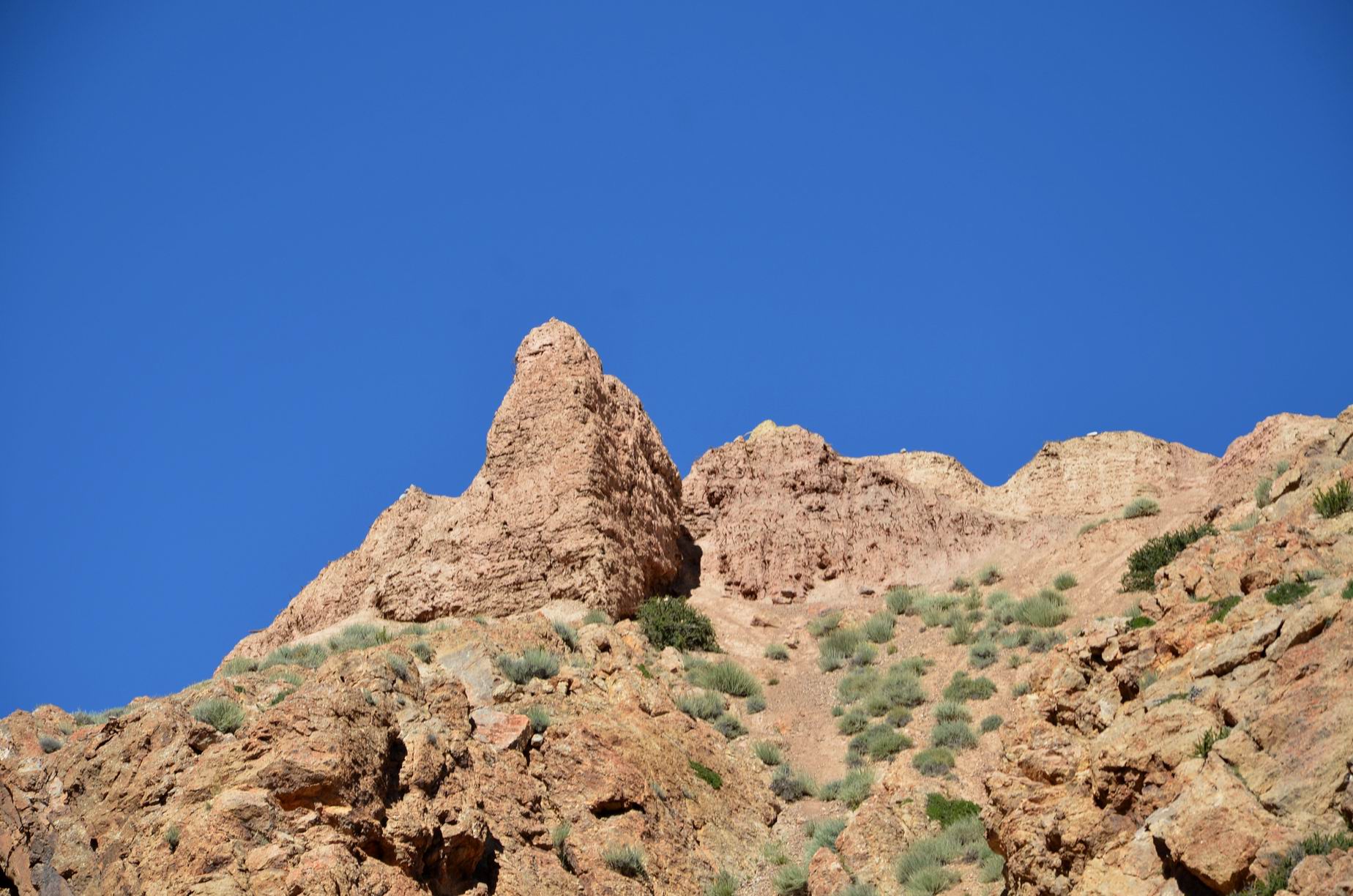 右边小悬崖, 左边公主堡(山顶浅色土墙边缘), 塔什库尔干河从中间流过: