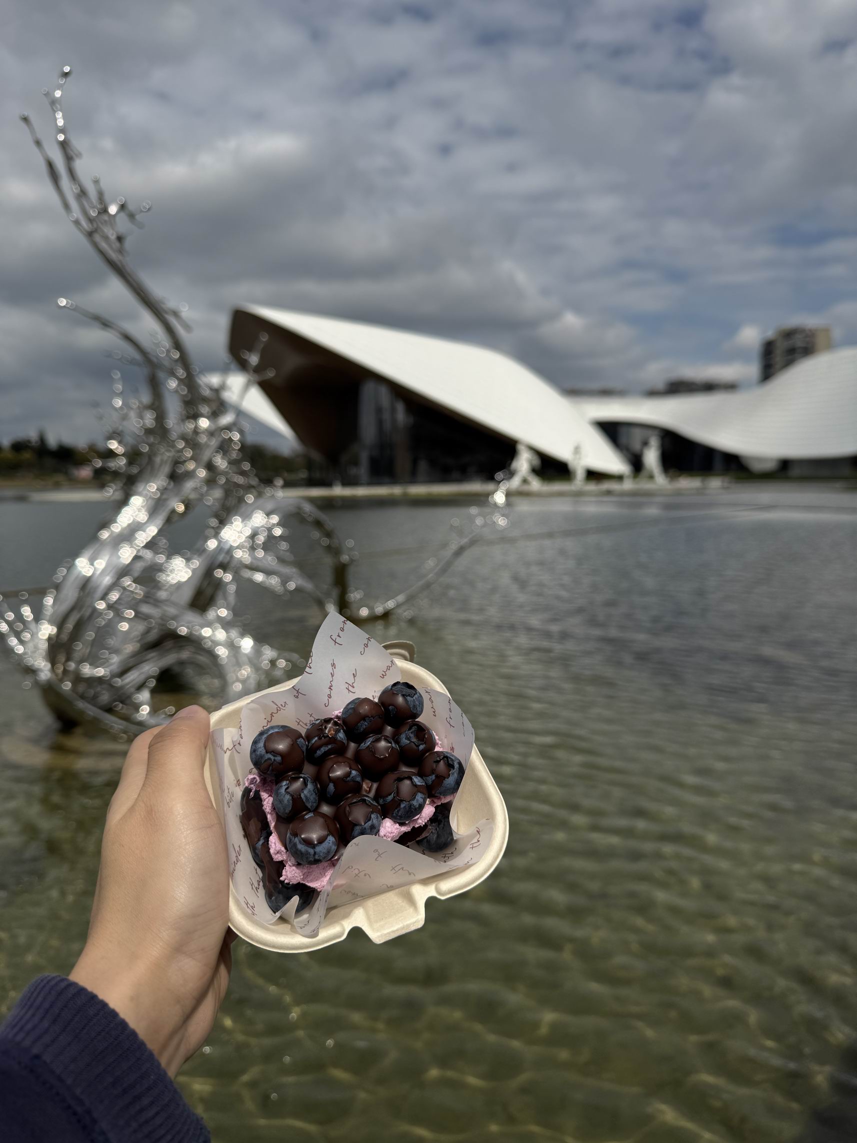 今年在天府艺术公园吃了一个蓝莓冷萃酸奶巧克力: